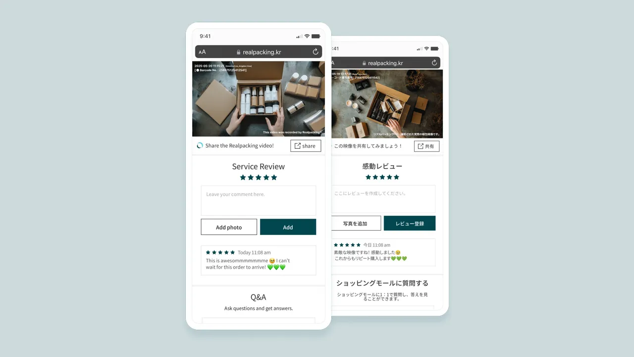 For international customers who can't visit physical stores, video documentation becomes the most intuitive and compelling way to experience the brand. It also enables faster resolution of inquiries and returns, strengthening both CS efficiency and customer trust.